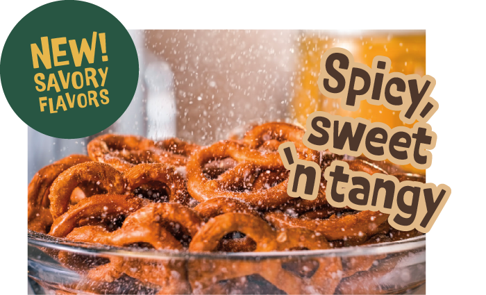 Spicy, salty, sweet‘n tangy. Be warned, these pretzels have a kick like a Texas mule. From fiery Jalapeno Queso to the new Kickin’ Korean BBQ, we temper the heat with just a hint of sweetness for crunchy flavor bombs that’ll keep you coming back again, and again, and again. And again.